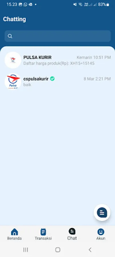 Aplikasi: Chat ke CS PulsaKurir