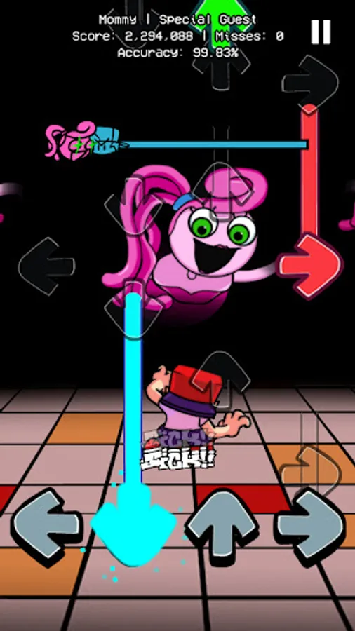 As the main character, you'll guide Mommy through a series of challenging levels, tapping along to the beat of the music and matching the rhythm with precision. The mod features three main songs: Special Guest, Mommytime, and Hug Me. Each song is distinct, showcasing Mommy Long Legs' eerie charm and adding an extra layer of intensity to the gameplay.