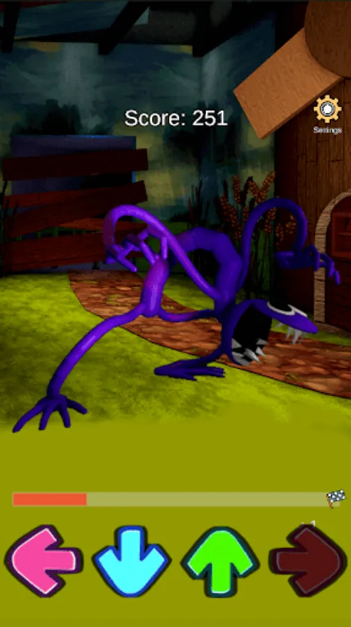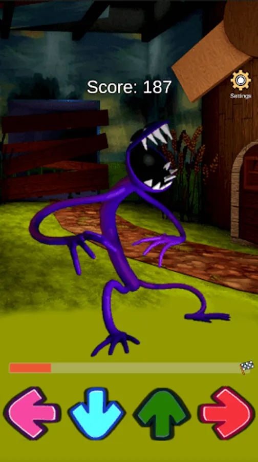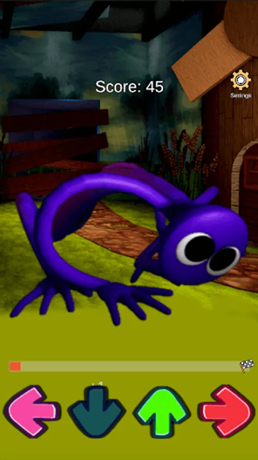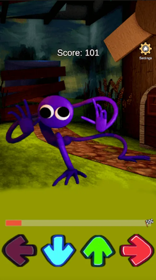 In the FNF Purple Rainbow Character Test game, you can test the movements and sounds of the main character. To do this, click on the arrows on the screen of your device. In this case, the hero will make certain movements and make sounds, and you will gain points.