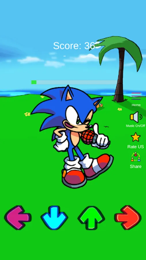 In the game FNF SONIK.RUSH Character Test you can test the movements and sounds of the main character. To do this, press the arrows on the screen of your device. In this case, the hero will make certain movements and make sounds, and you will score points.