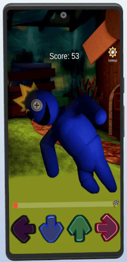 FNF Blue Rainbow Mod Test has a simple and intuitive control - click on the arrows on the screen of your device and Blue will move and make a sound. To make it even more fun for you, after each click you will be awarded points and music will sound in the background. By the way, in FNF Rainbow Blue Test you can turn off the music and listen to the voice of the main character only.