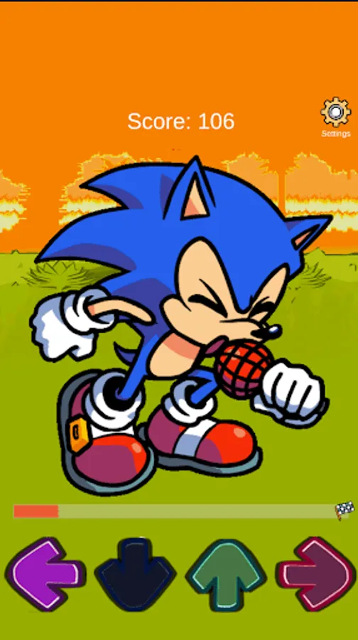 Sonik Rush Mod Test FNF has a simple and intuitive control - click on the arrows on the screen of your device and Sonik will move and make a sound. To make it even more fun for you, after each click you will be awarded points and music will sound in the background. By the way, in FNF Sonik Rush Test you can turn off the music and listen to the voice of only the main character.