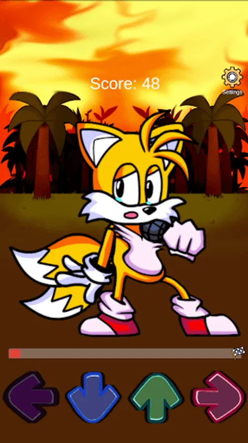 Tails Mod Test FNF has simple and understandable control - press the arrows on the screen of your device and Tails will move and make a sound. To make you even more fun, after each press, you will be charged points and music will sound. By the way, in FNF Mods Tails you can turn off the music and listen to the voice of only the protagonist.