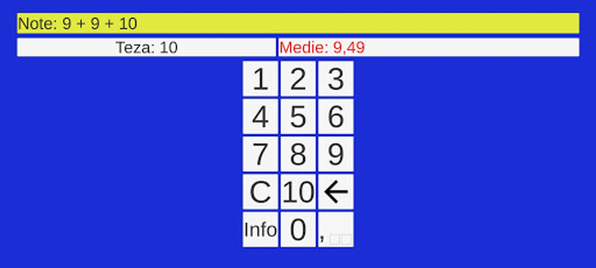Made within a FOR LIFE project by Andrei-Robert's Guinea, under the coordination of Prof. Ovidiu Bădescu, this application helps you to easily calculate the average for certain school subjects. And around the end of the semester, many students want to know what grades they need to increase their average, and this application is exactly what they need.