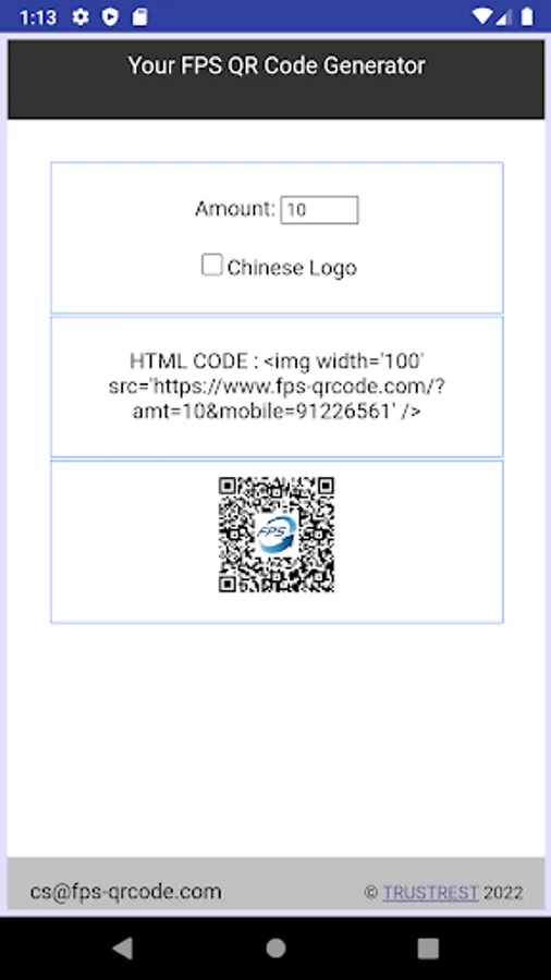 We provide API service to create FPS QR code for your online website or invoice printout so that you can accept payment from FPS. All you have to do is to include an IMG tag with the SRC pointing to our API in your HTML code. Also, you can show the QR code as an image in your invoice printout.