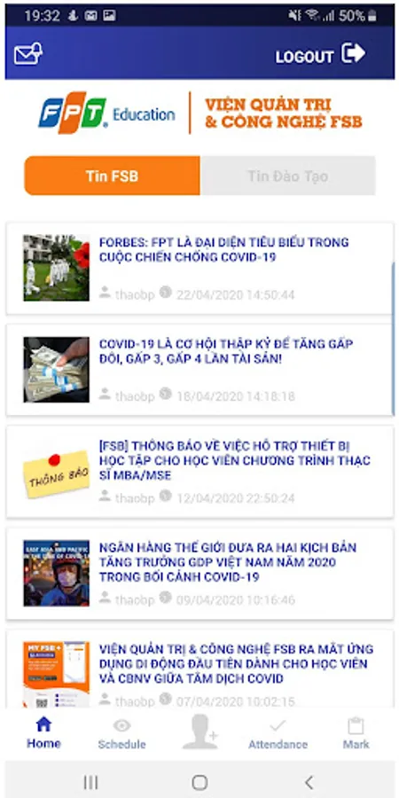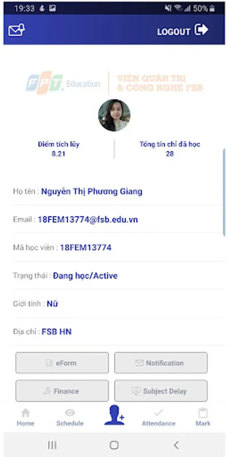 AP: Student Management Software, Class Schedule, Attendance, Scores, News, Student notices and FSB.