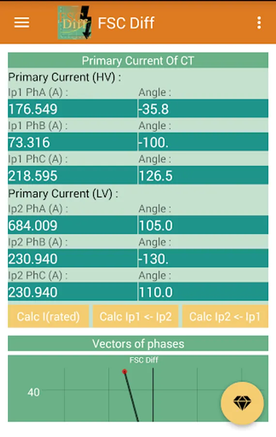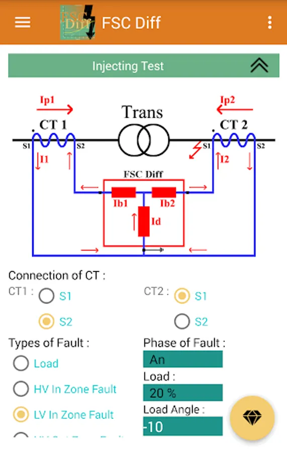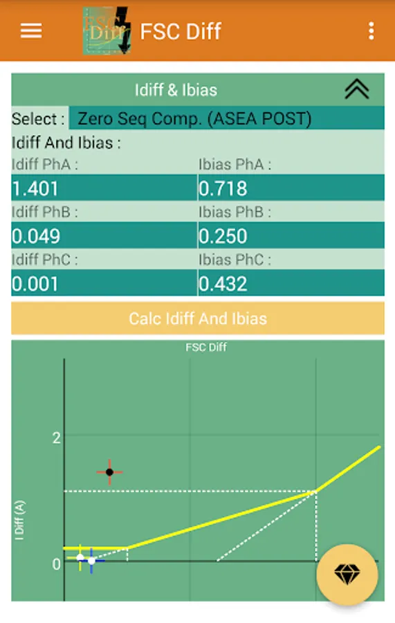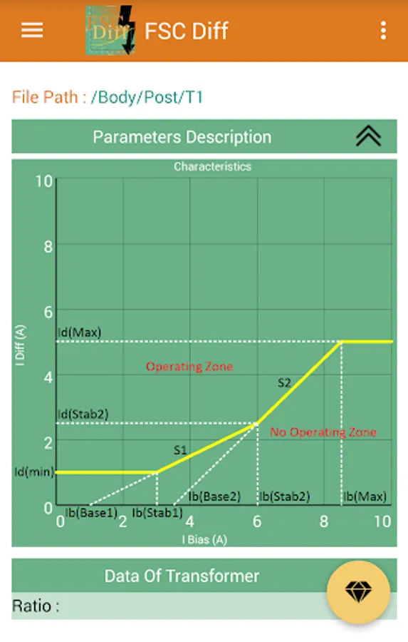 This app calculates the secondary currents of CTs and matching CTs for calculations of Idiff and Ibias for each phase, and the trip points are plotted on the stability characteristic of the differential relay, and you can easily see the performance of the transformer differential protection relay.