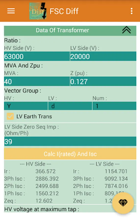 In this app, enter the transformer information like MVA, transformer ratio, vector group and short circuit impedance of transformer, and the app calculates the short circuit currents of high voltage side and low voltage side.