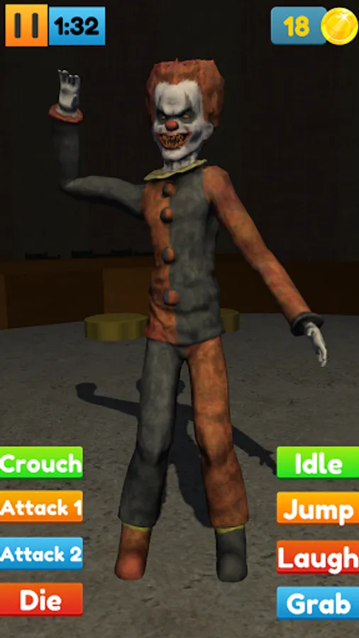 Clown room is simple casual gameplay of a scary clown escape, where you tap buttons and horror clown act accordingly. It's a kind of clown simulation.
