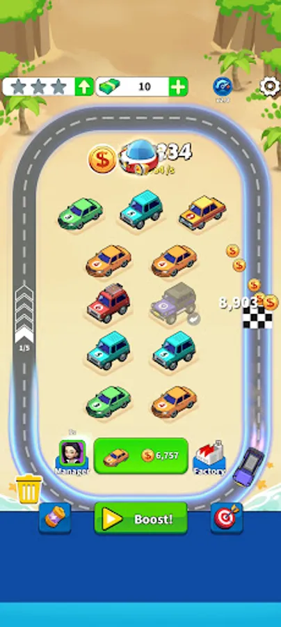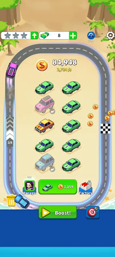 Your vehicle runs automatically on the track - even when you are offline, you can earn money!