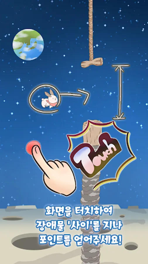 화면을 눌러 토끼의 출근길을 방해하는 장애물을 피해 늦잠을 자버린 달 토끼를 출근시켜주세요!