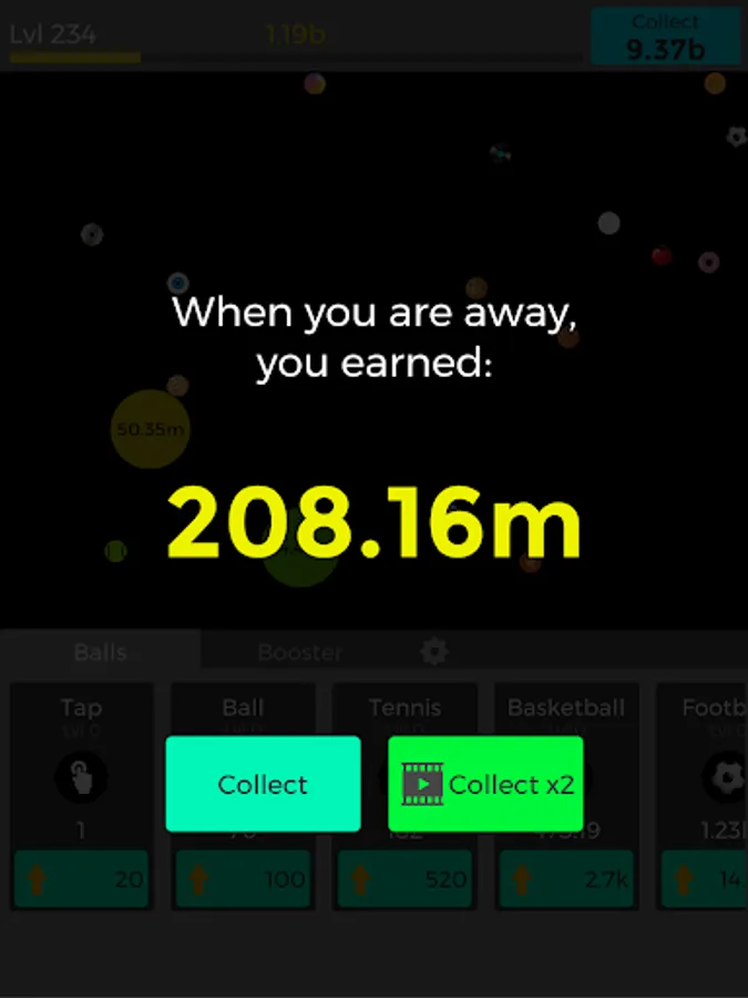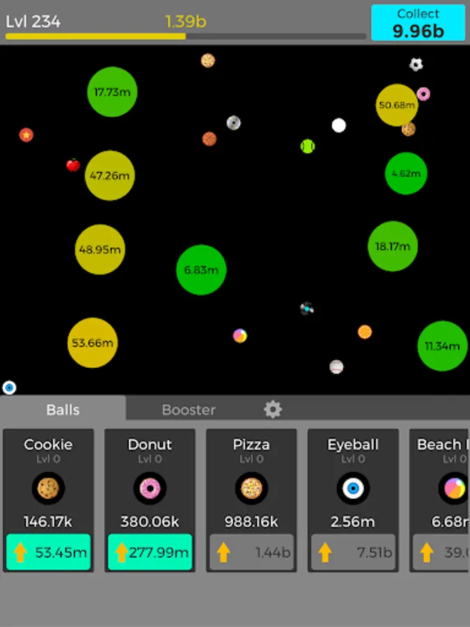 Idle Balls (or Balls Clicker) is an innovative tap or idle game, in which you enjoy the journey of building things from scratch, zero to point to eventually a giant empire with hard-working, weird-looking balls mining resources for you. All you have to do is just manage and decide which to invest in.