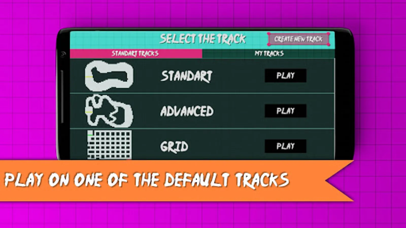 Draw your own Tracks or play on one of the 6 standard Tracks and challenge anyone.