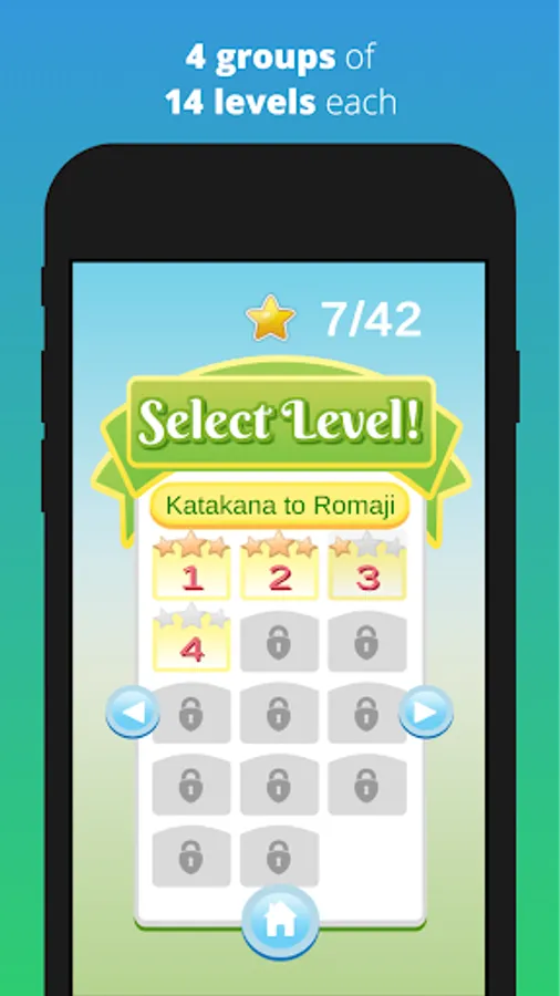 Get at least one star to unlock the next level. You can repeat any level as much as needed to improve your level score.