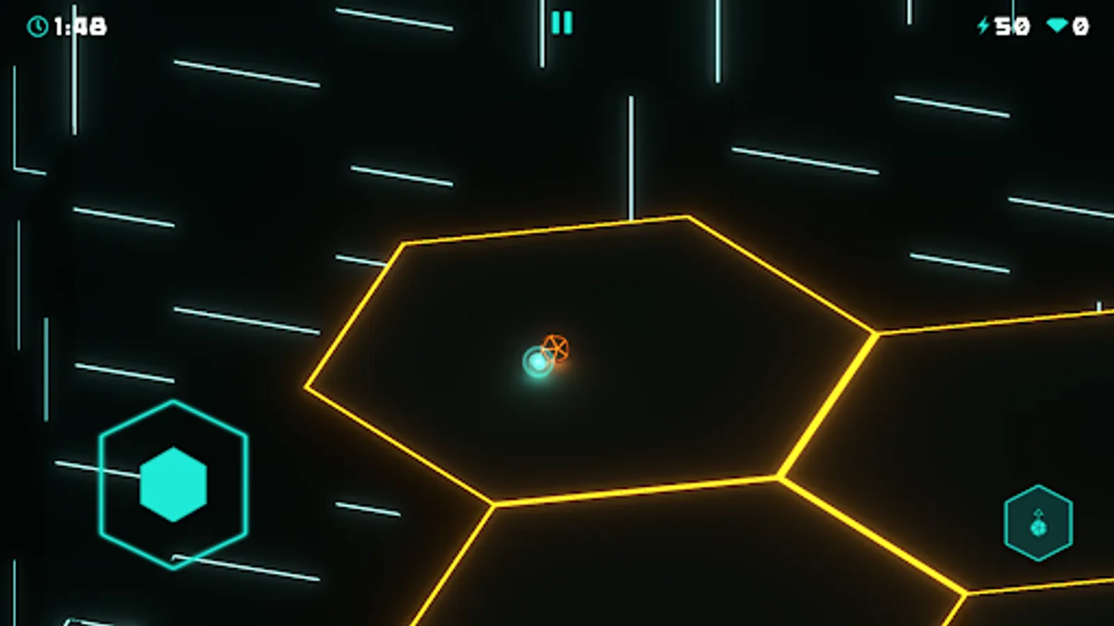 You control a cyber ball that attracts cyber orbs. Your goal is to survive waves of magical orbs and get rid of them by means of pushing them off the ground or using special cyber abilities.