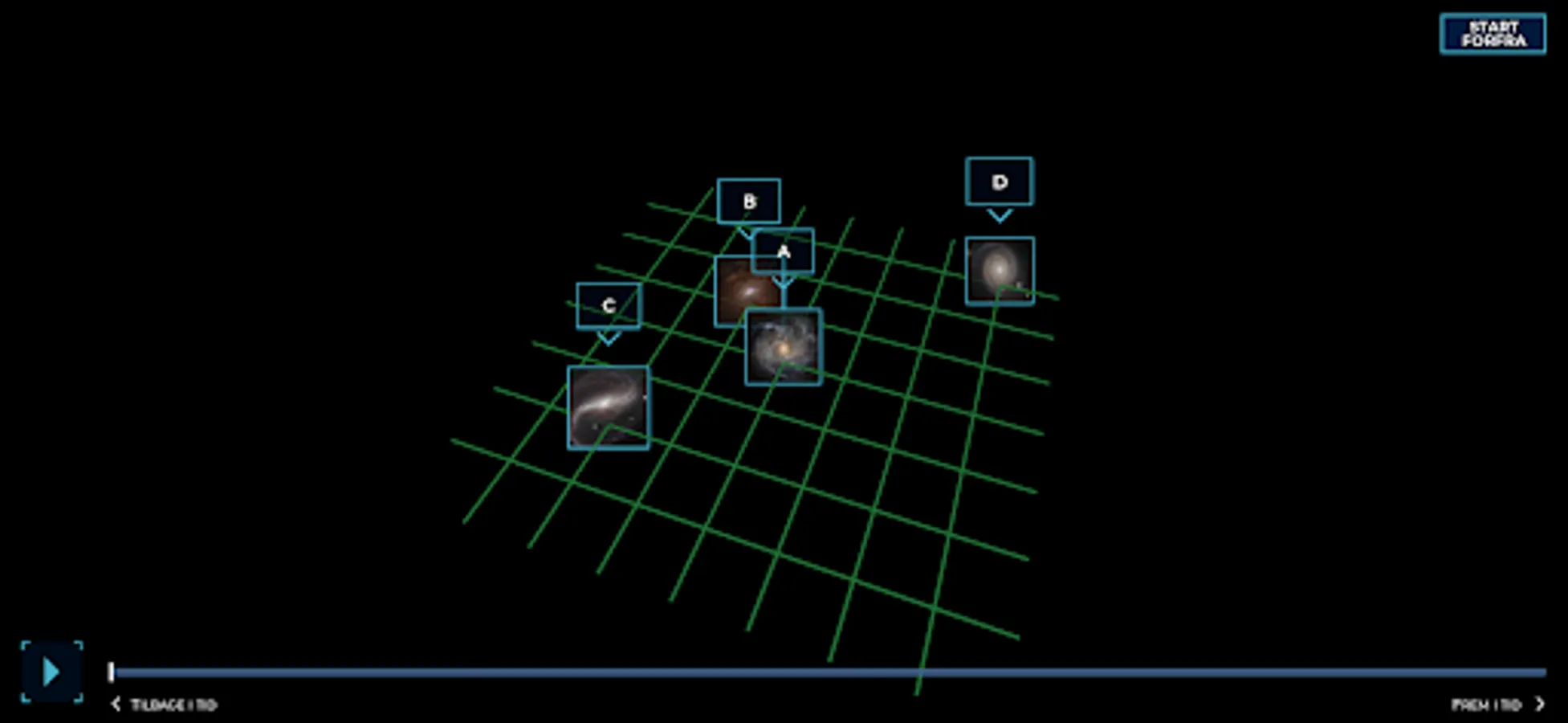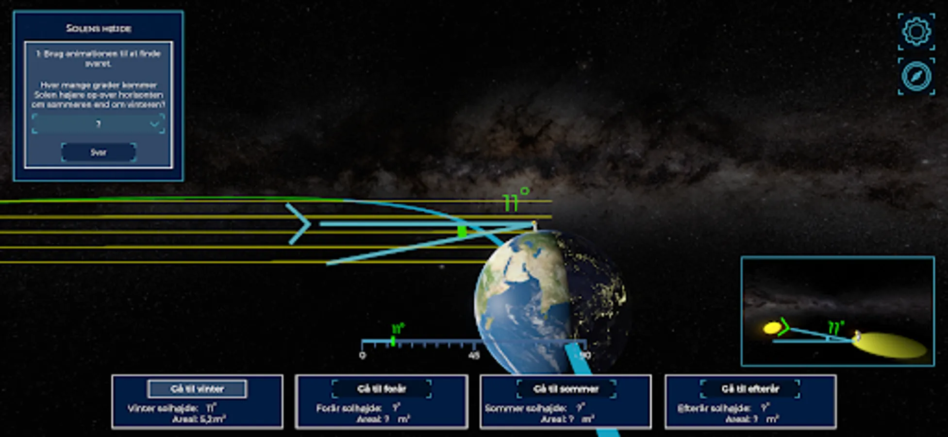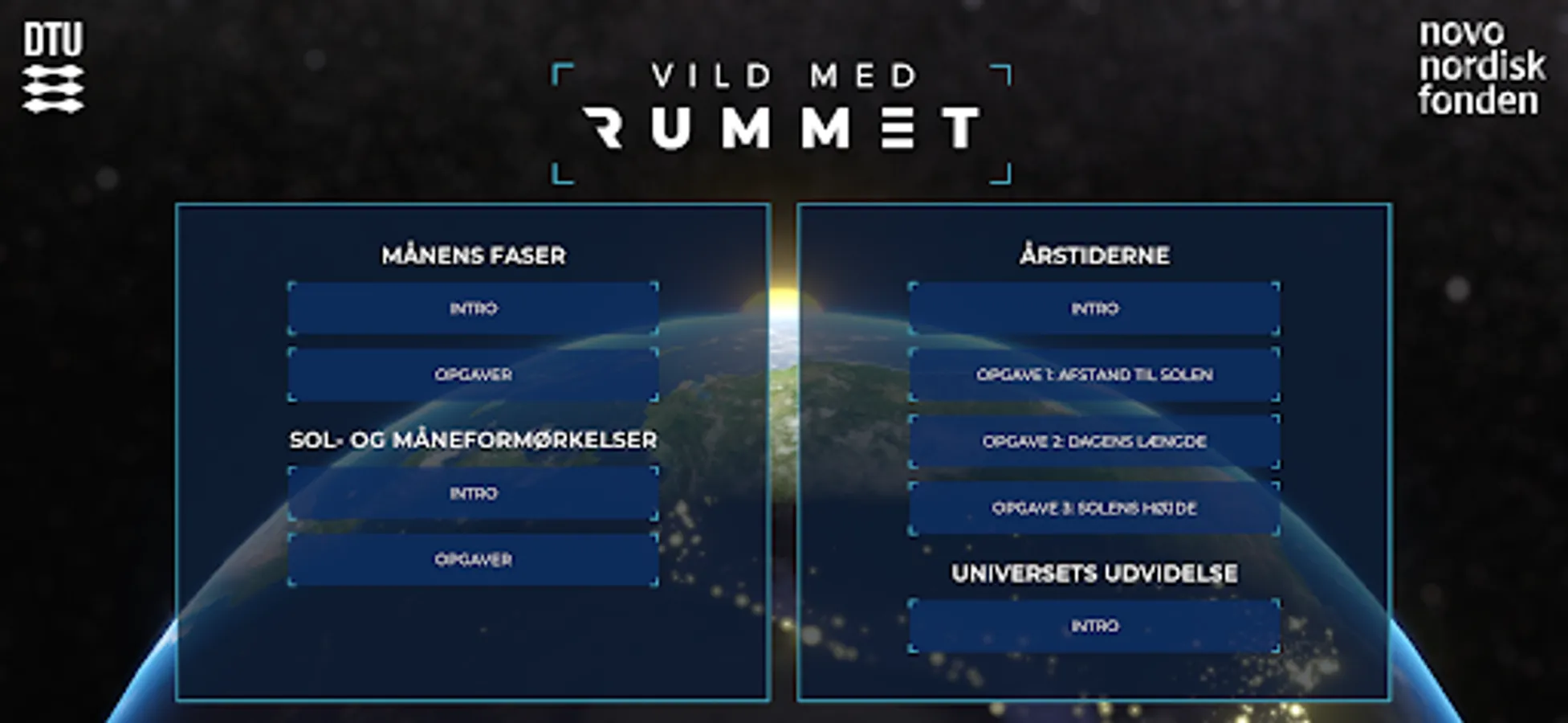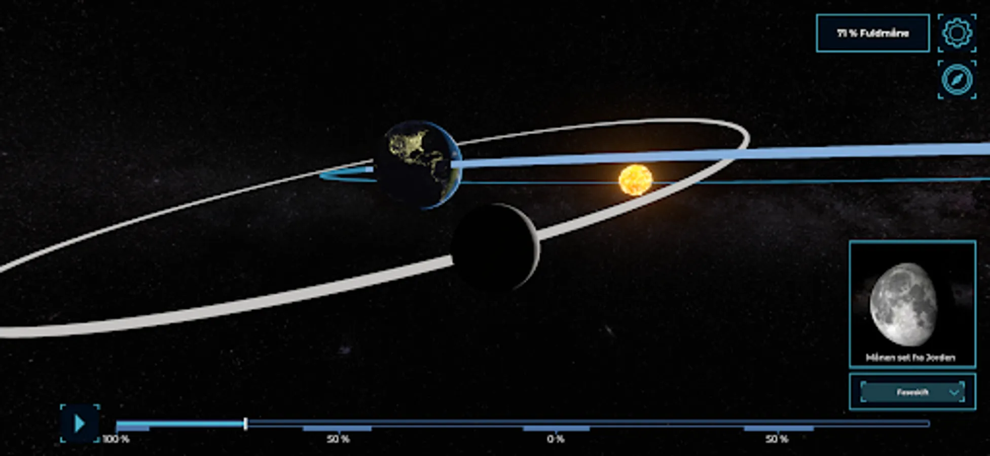 Wild with Space is a collection of interactive assignments for primary school and HTX / STX / HF. The tasks are about the seasons, the phases of the moon, solar and lunar eclipses and the expansion of the universe. Each of these themes has both a simple interactive animation as well as a version with tasks.