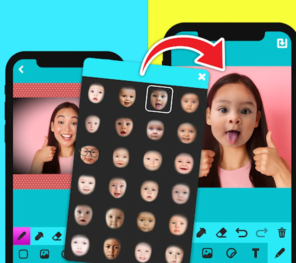 Prepare for new and exciting face change moments! What did you look like when you were younger? Let's go back to your happiest days and see who you looked like back then. Apply the face stickers for age change in photos and see the results instantly! Every sticker can be adjusted to fit the image perfectly! Lots of fantastic stickers are here to achieve the reverse aging effect on photos and be younger! Become young in an instant! Experiment with different stickers and find the one that looks best on your selfies. Change faces on photos and look younger!