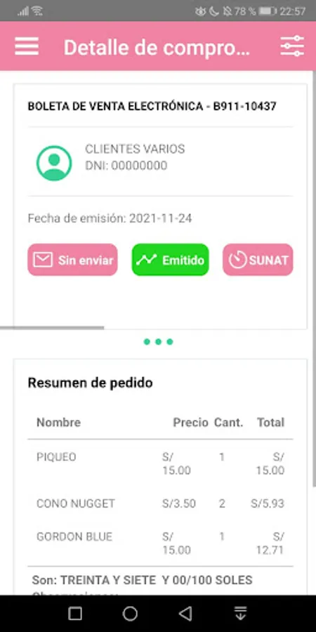 You will be able to create Electronic Tickets, Electronic Invoices, you will be able to control your Inventory and you will be able to see your daily Cash Closing, you will be able to print your receipts by connecting your printer via Bluetooth, on the web you will be able to download your receipts.