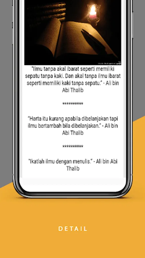 Ali, since childhood, has been known to be smart and brave. He received direct instruction from the Prophet, because they lived together under one roof. Because of his broad insight, he earned the nickname "Babul Ilmu" which means "gate of knowledge". Besides passing on his good qualities, he also gave wise words full of advice for all of us.