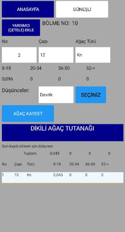 By entering the tree types and volumes in the VAGH tables of the region you work in, you can determine how much work you have done instantly and everything will be ready when you return from the field.