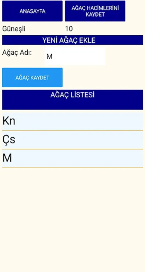 You can create your list by saving the M³'s in the tree list once and typing only the tree diameter.