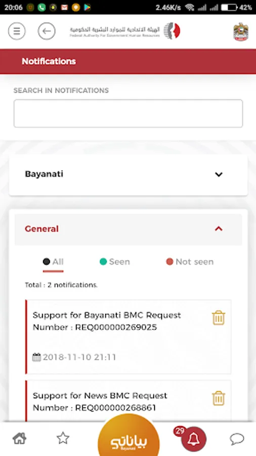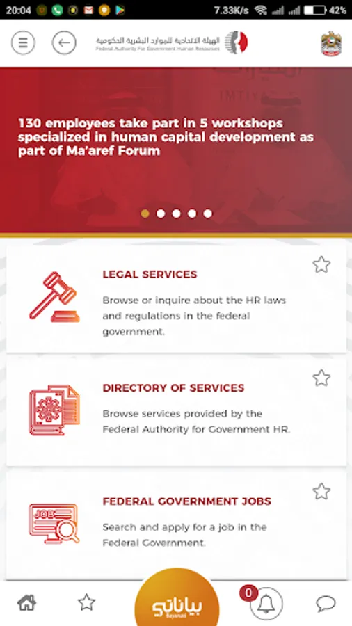 The Bayanati menu offers the following services to the Federal Government Employees: