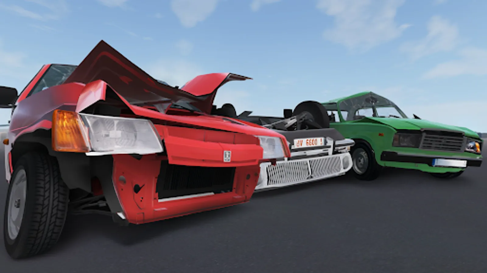 Realistic car destruction physics, different types of cars and maps. Complete missions and car stunts, crash rusty Zhiguli and get experience and points for it to improve your car or buy a new one.