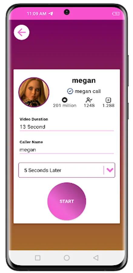 After you download the application, choose an image from the four images on the main page of the megan and wednesday video call prank application ,And then select the time when you want to receive the fake call, for example, directly or after several minutes and press the start button, you will automatically exit from the application and the call comes after the time you chose, which makes the video call with megan and wednesday look real.