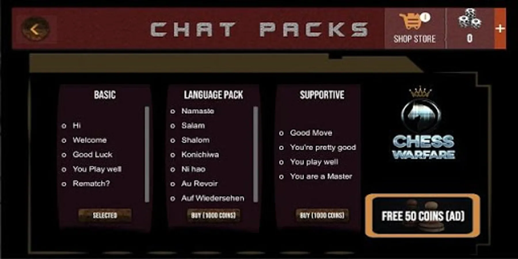 Collect daily rewards to help you along the way. Sign in with Facebook, Google Play or create a Chess Warfare account to save your progress.