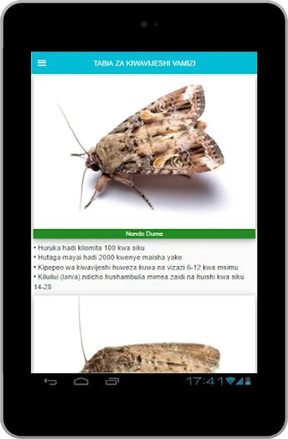 Katika App hii, tutamzungumzia zaidi viwavi jeshi aina ya Fall ArmyWorm (Spodoptera frugiperda). Ambapo utajifunza jinsi ya kuwatambua, mzunguko wao wa maisha, athari zao kwenye mazao na namna ya kuwadhibiti.