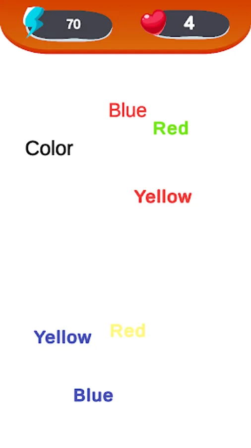 There is a constantly changing target color on the screen. And we need to decide whether to focus on what is written on the target or what color the target is, and this is also how we need to understand from the constantly changing Color or Written names on the screen. To give an example, let's assume that the screen reads yellow in red. Let's say 'Color' on the right of the screen. In the game, we need to break up the moving texts in red color.