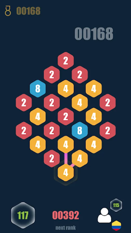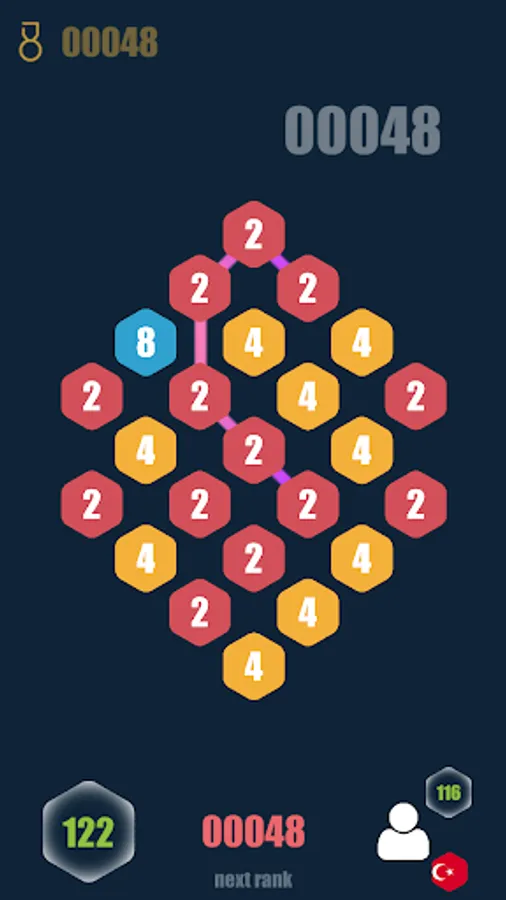 Link blocks with numbers to get score. (2 for 2 and so on connection)