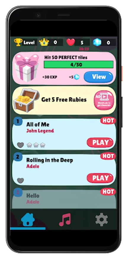 Note: This game does not include any copyrighted material or digital media. The piano melodies are arranged as a sequence of individual piano notes, and the interpretations of these songs are original and created by us for entertainment purposes only.