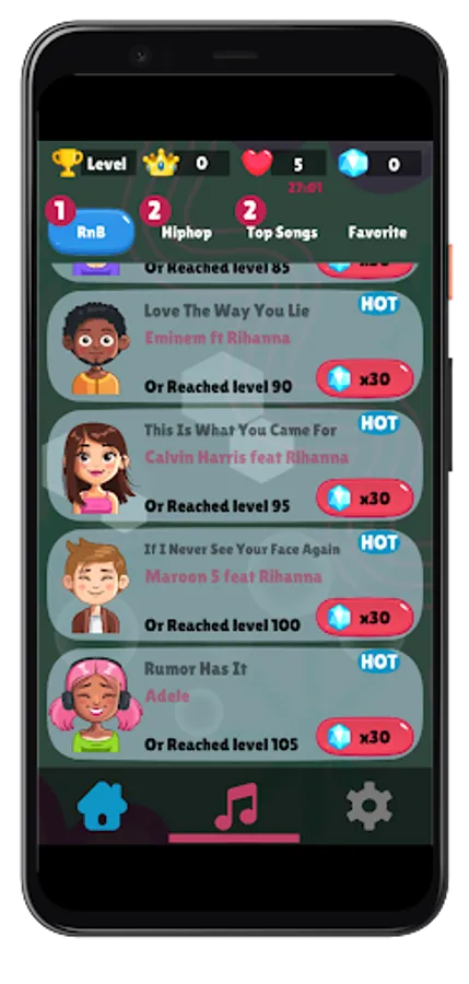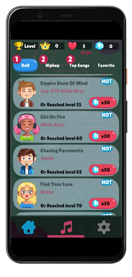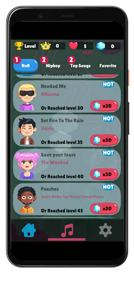 R&B Songs Piano Tiles is an addictive piano game, meticulously crafted for fans of rnb music. It features a collection of top rnb songs that provide you with an unparalleled gaming experience. Test your speed and precision to the rhythm of vibrant and dynamic music. From timeless classics to the latest chart-toppers, you'll find them all in this game.