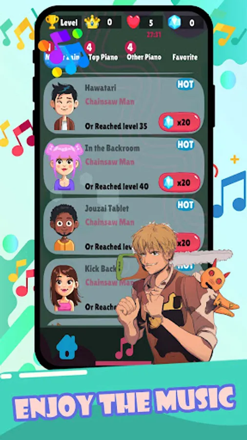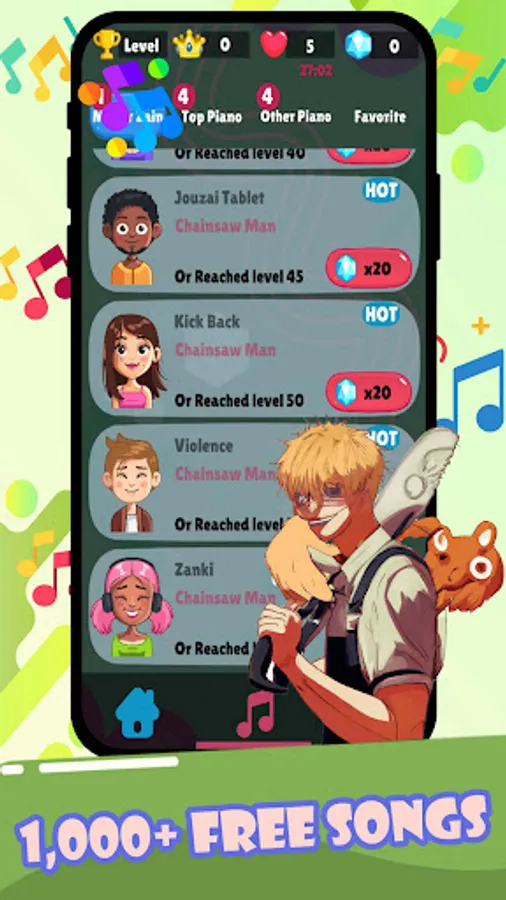 - **Chainsaw Man Denji**: Join the adventure with Denji, the charismatic Chainsaw Man, leading you through an unforgettable musical journey.