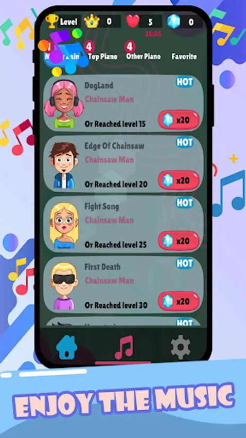 In the world of **Chainsaw Man Denji**, both anime enthusiasts and music lovers can explore a riveting game filled with rhythmic challenges. Navigate your way through an array of piano tiles, hit the beats at the right moment, and unfold an immersive anime adventure right at your fingertips.