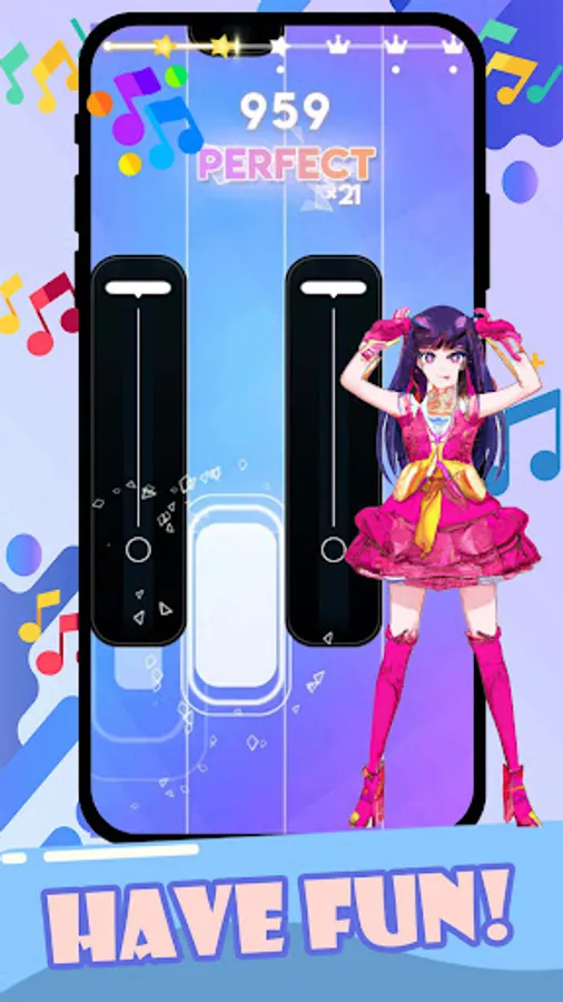 In OSHI NO KO Game Music Piano, your fingers dance across the piano tiles, syncing with the addictive beats of OSHI NO KO songs. Beginner or seasoned pianist, our game caters to all skill levels. Begin with the basic levels, feel the groove, and unlock the more challenging stages as you progress.