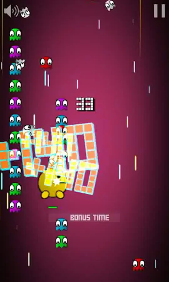 Collect foods to grow Pacgy up and entering the bonus mode for higher scores.