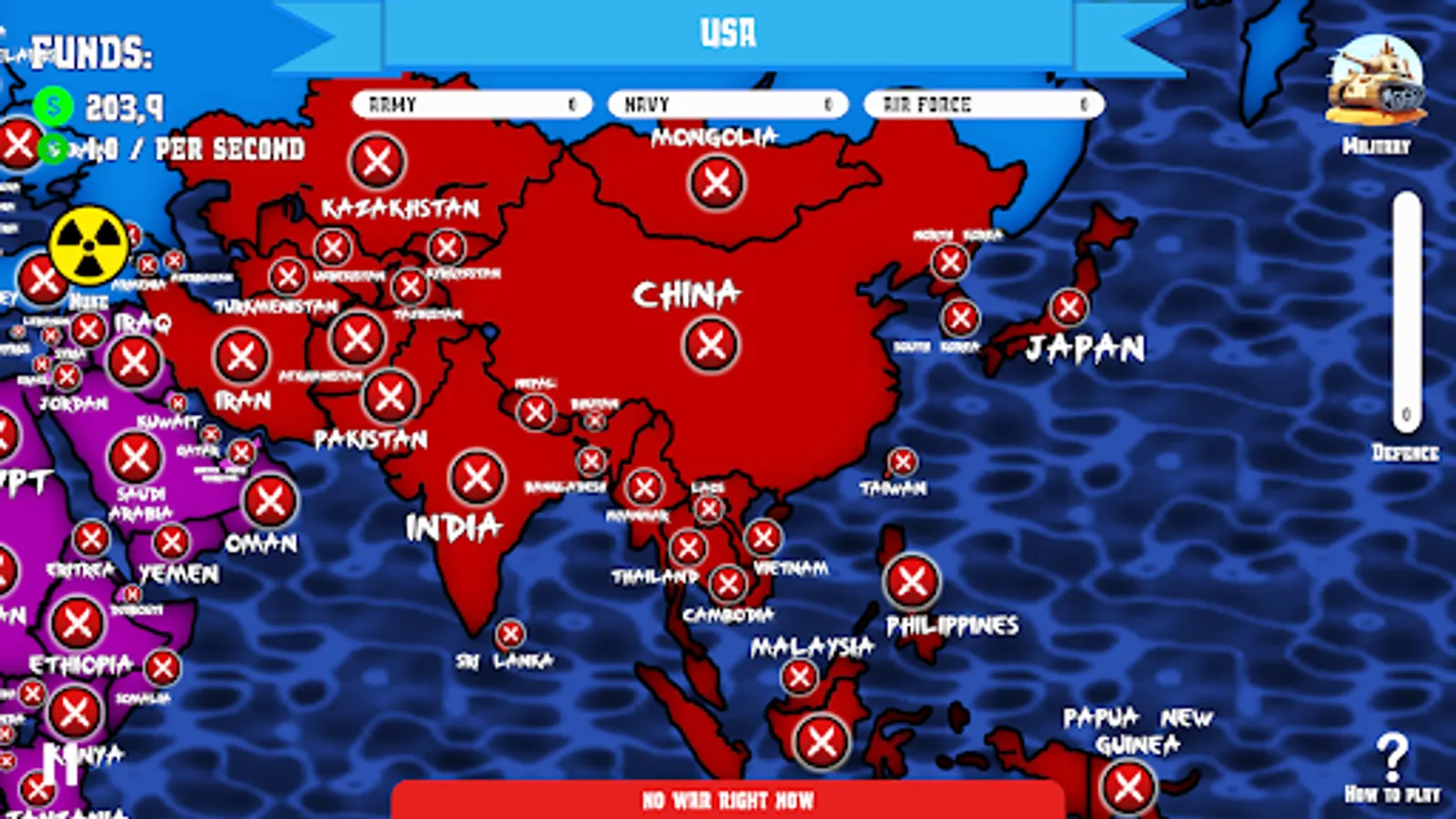 It doesn't matter if you are an experienced or inexperienced player, Dictators War: World No Peace is quick and easy to understand and play. You will see our game will meet your expectations and give you countless hours of exciting play. Will you survive the battle, conquer countries, and even conquer the world? Show us your skills in fighting and conquering the world. Think strategically and react quickly while conquering countries and territories in this epic strategy game!