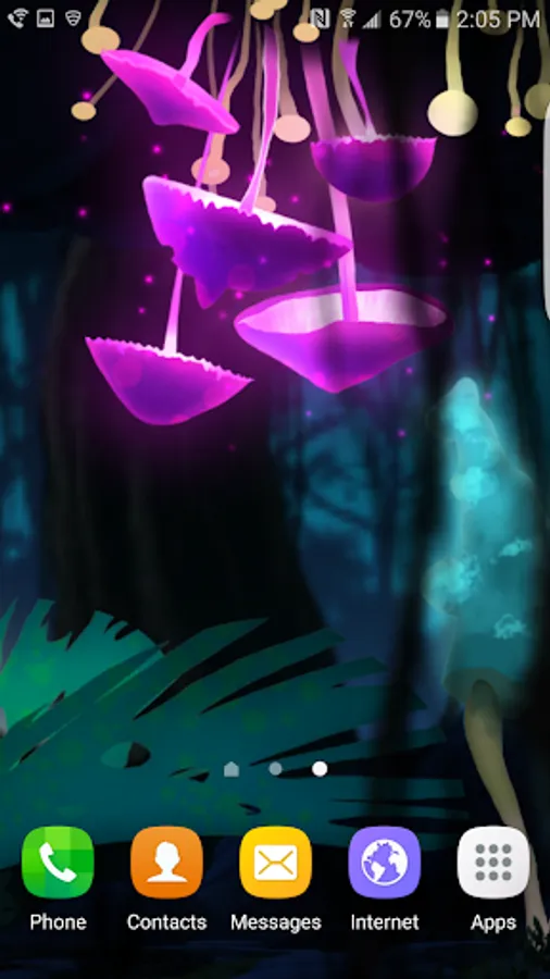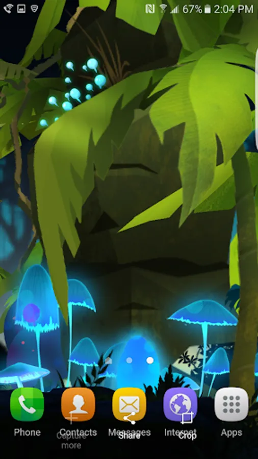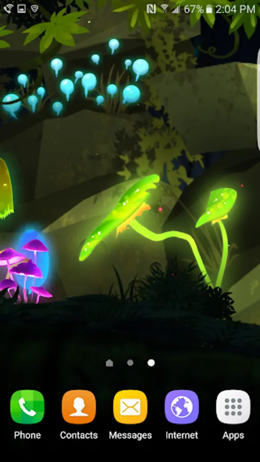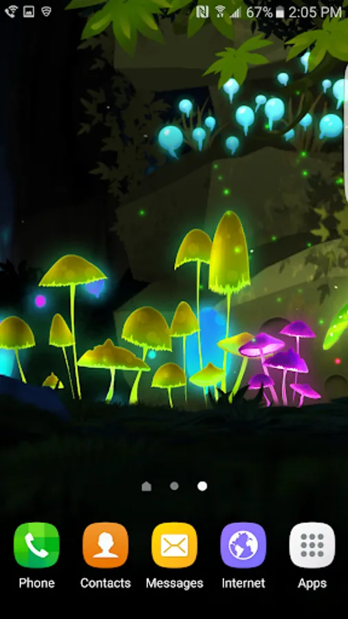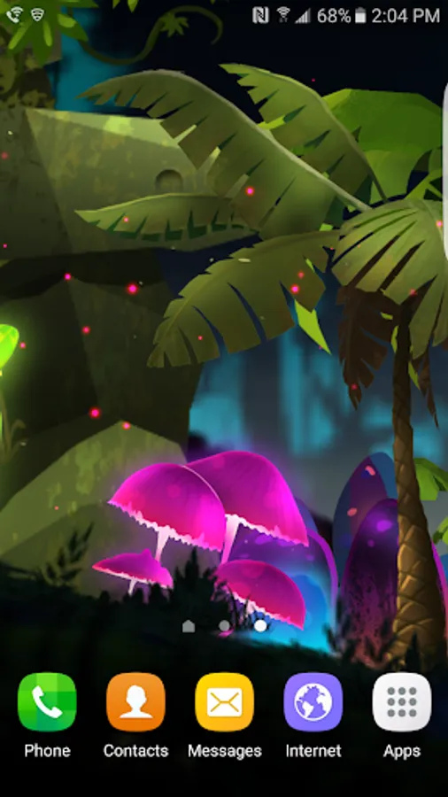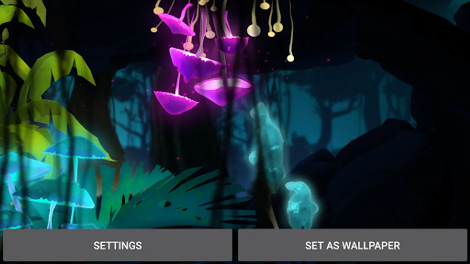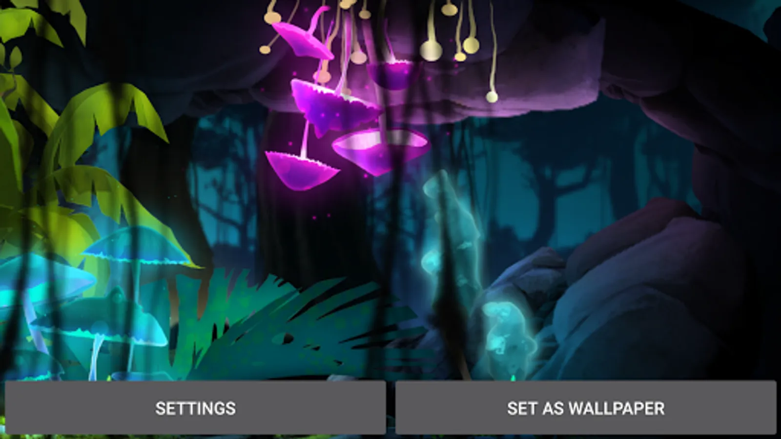 An amazing Gloving Mushroom Forest 3D parallax Effect live Wallpaper on Google Play for your phone or tablet! Fully 3D forest Firefly scene will provide you great mood and keep you calm during a day. Realistic gloving vegetation, colorful tree's and colorful landscape, flying fireflies and amazing alive lighting give this jungle parallax wallpaper very realistic look.