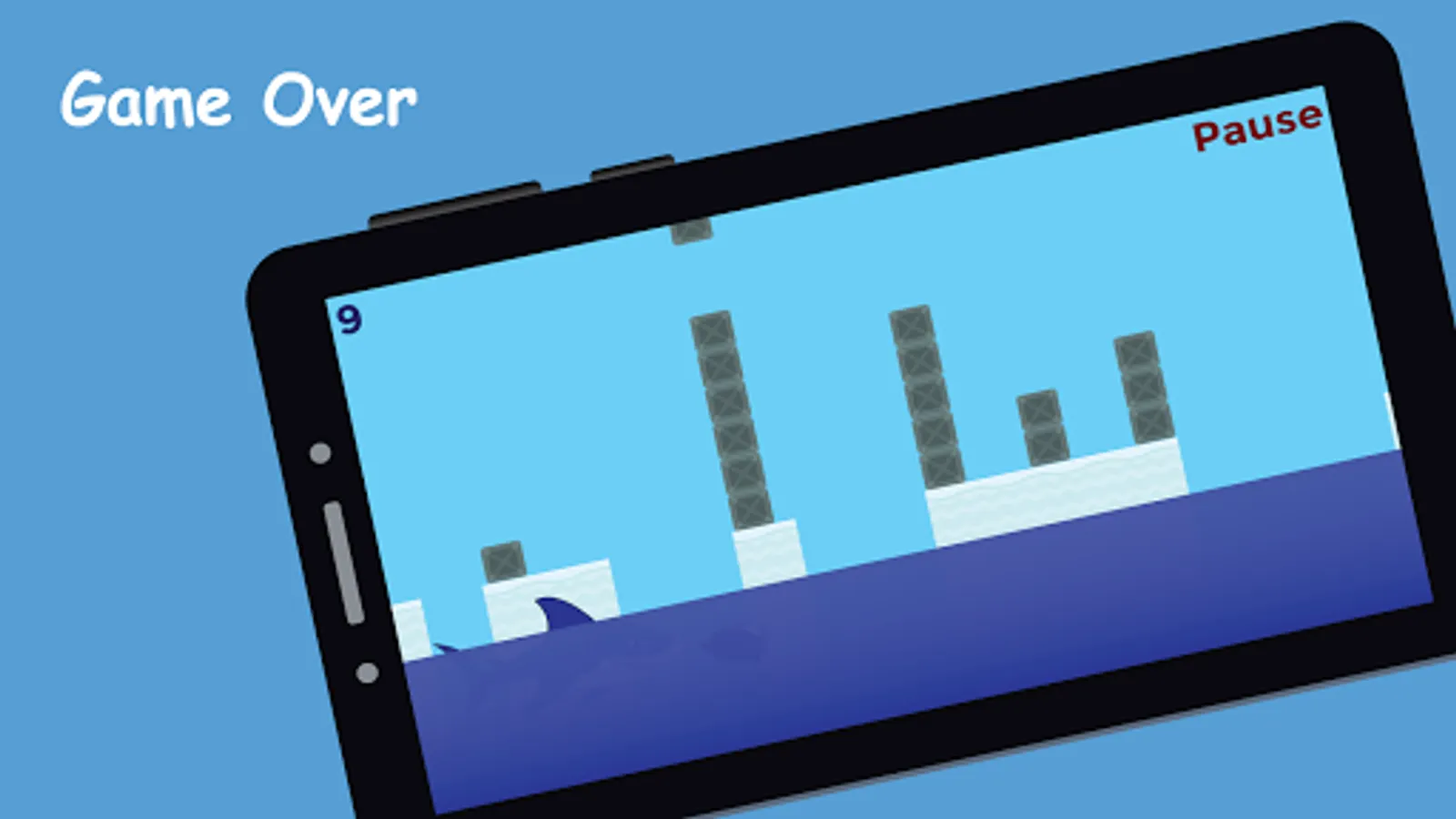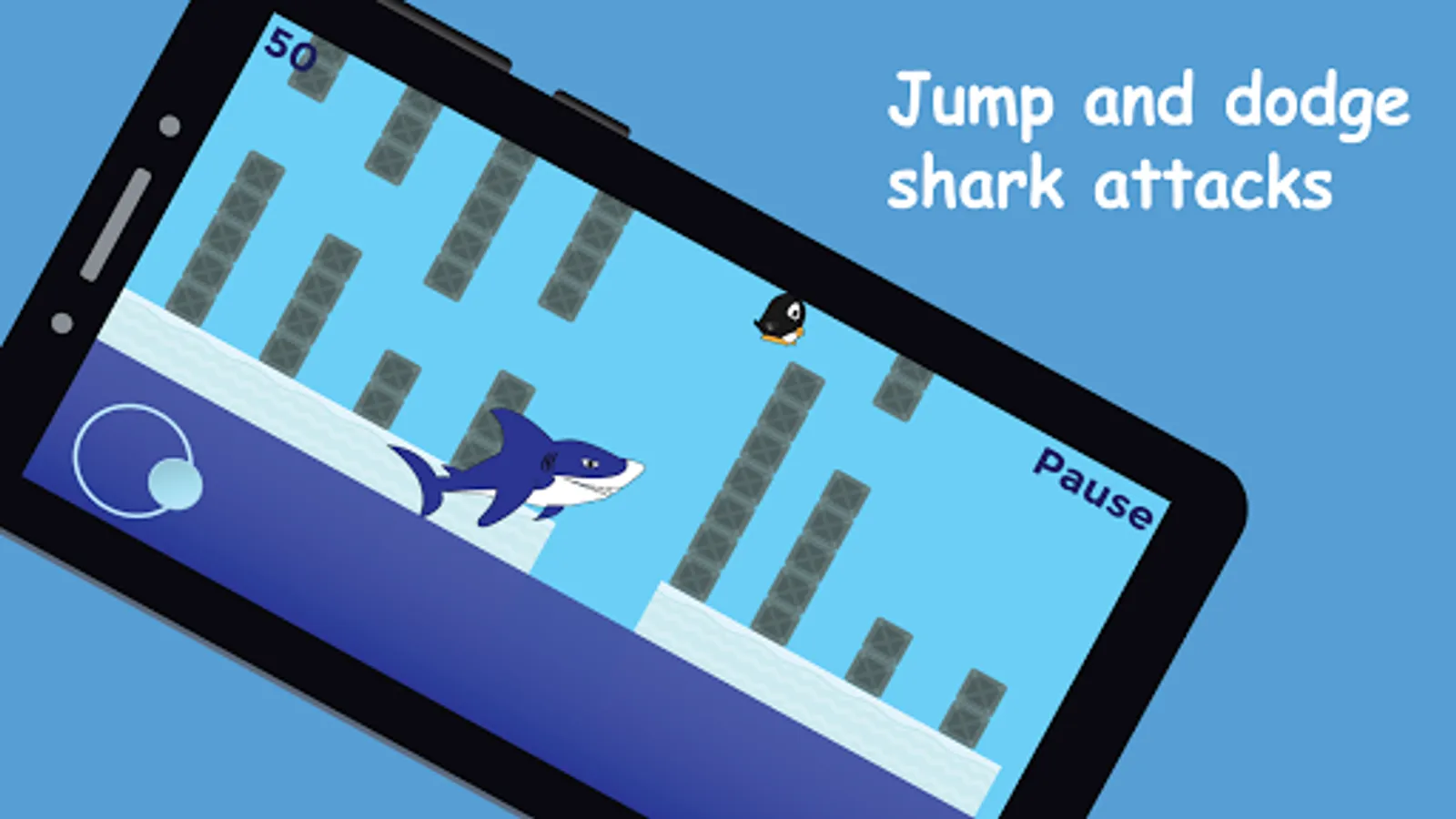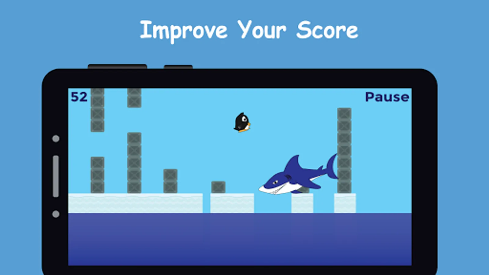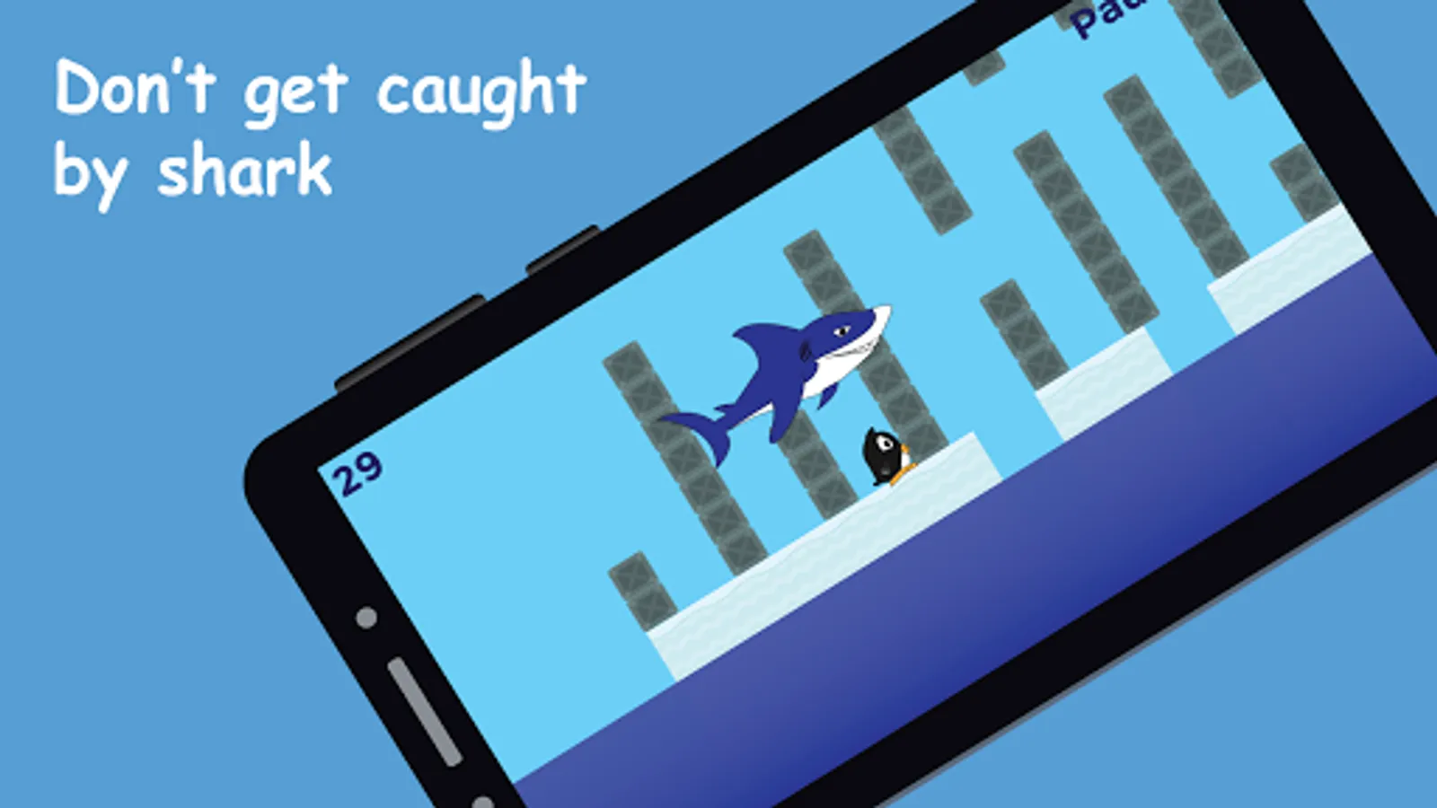 Hey penguin, don't let the shark eat you and dodge the crates!