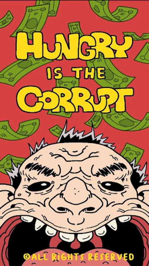 "Hungry is the Corrupt" is an arcade game with a simple yet powerful message expressed in a satirical way, "when the corrupt can get its hands on state property, policies or the tax payer's money, things will always go wrong".