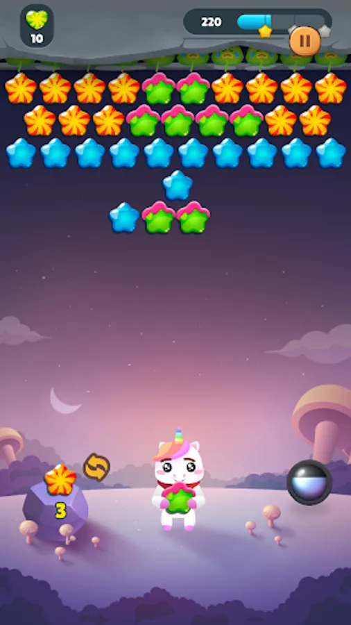 Its a simple bubble shooting game where you need to shoot bubbles with same color to clear the bubbles until you complete the level.