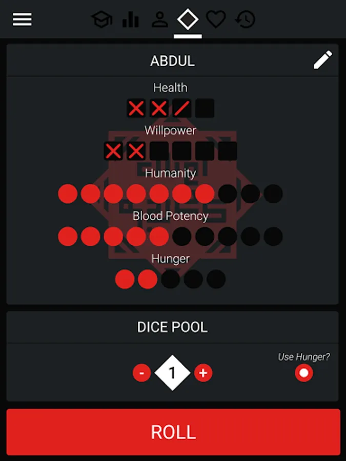 V5 Dice is a quick, easy and beautiful dice roller for Vampire: The Masquerade 5th Edition.