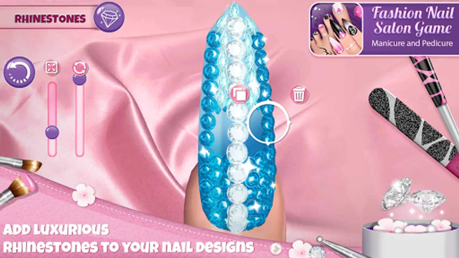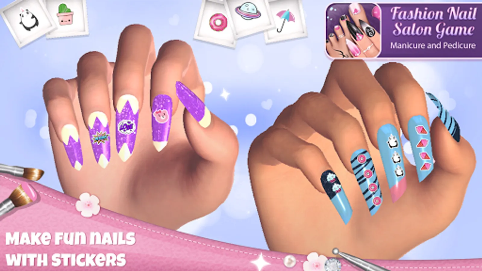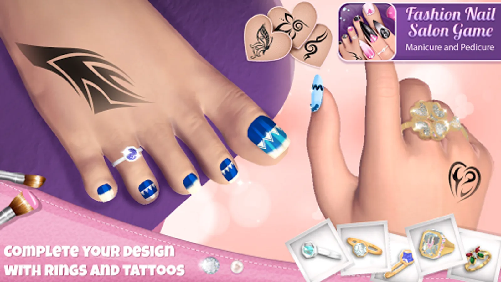 Paint fingernails using decorating tools and tons of decorations, put adorable stickers or fancy rhinestones in different colors, and get some unforgettable nails inspiration! Pedicure games for girls are just what you need in your smartphone, so have fun playing Fashion Nail Salon Game: Manicure and Pedicure App anytime during the day! No look is complete without perfect nails, so make yours today by downloading this girls manicure pedicure game!