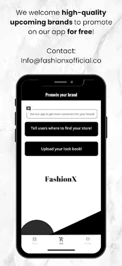 4. Brand sign up to freely promote on the app (First contact info@fashionxofficial.co)