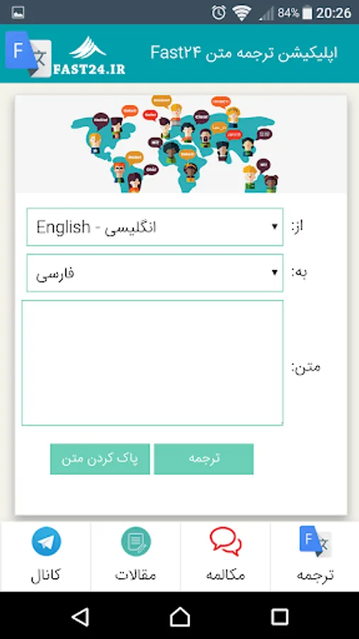 Fast24 Translator is a free multilingual machine translation service developed by Fast24.ir, to translate text from one language into another.