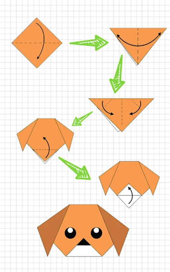 Origami books free Step by Step Instructions of a Dog Face.