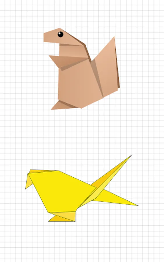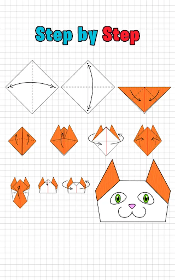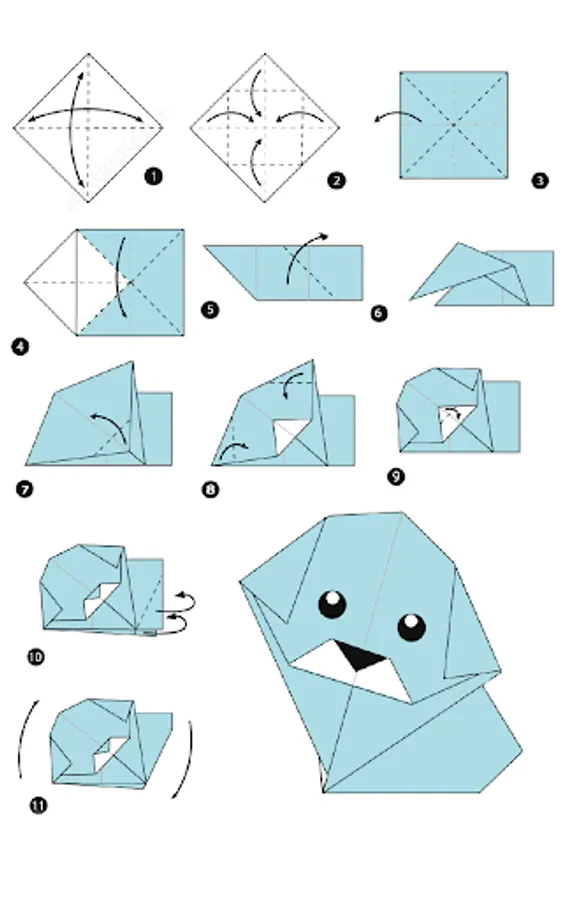 Learn how to make animal origami out of paper! This application with step-by-step instructions may be pleasant to you. Our instructions explain how to make different animal shapes from paper. For example, you will find origami instructions from a bear,origami dinosaur, panda, dog, giraffe, elephant, origami rabbit, piglet, fox and other paper animals. The collection has both complex schemes and simple ones.