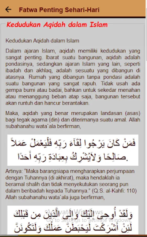 In syar'i definition, aqidah in Islamic religion means the problem of scientific problems originating from Allah and his Prophet, which is obligatory for every Muslim to believe it as a justification of Allah and His Prophet.4